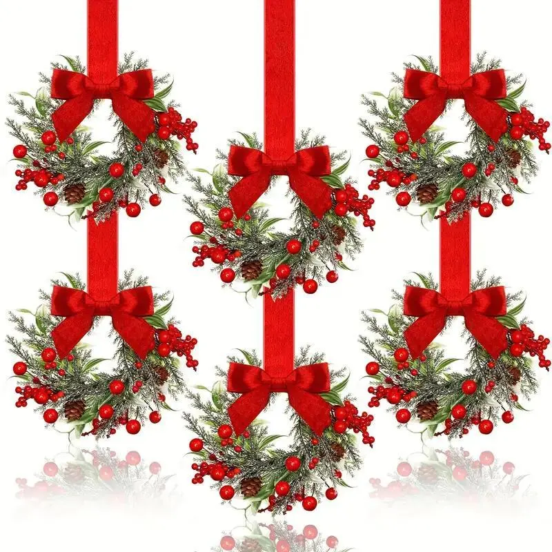- Features to Adore: our small Christmas wreaths for kitchen cabinets come adorned with red ribbon bows adding an extra layer of festive charm; Easy to hang, these wreaths can quickly transform your space into a holiday haven; You'll also discover gifts hidden within the design, adding a lovely surprise element